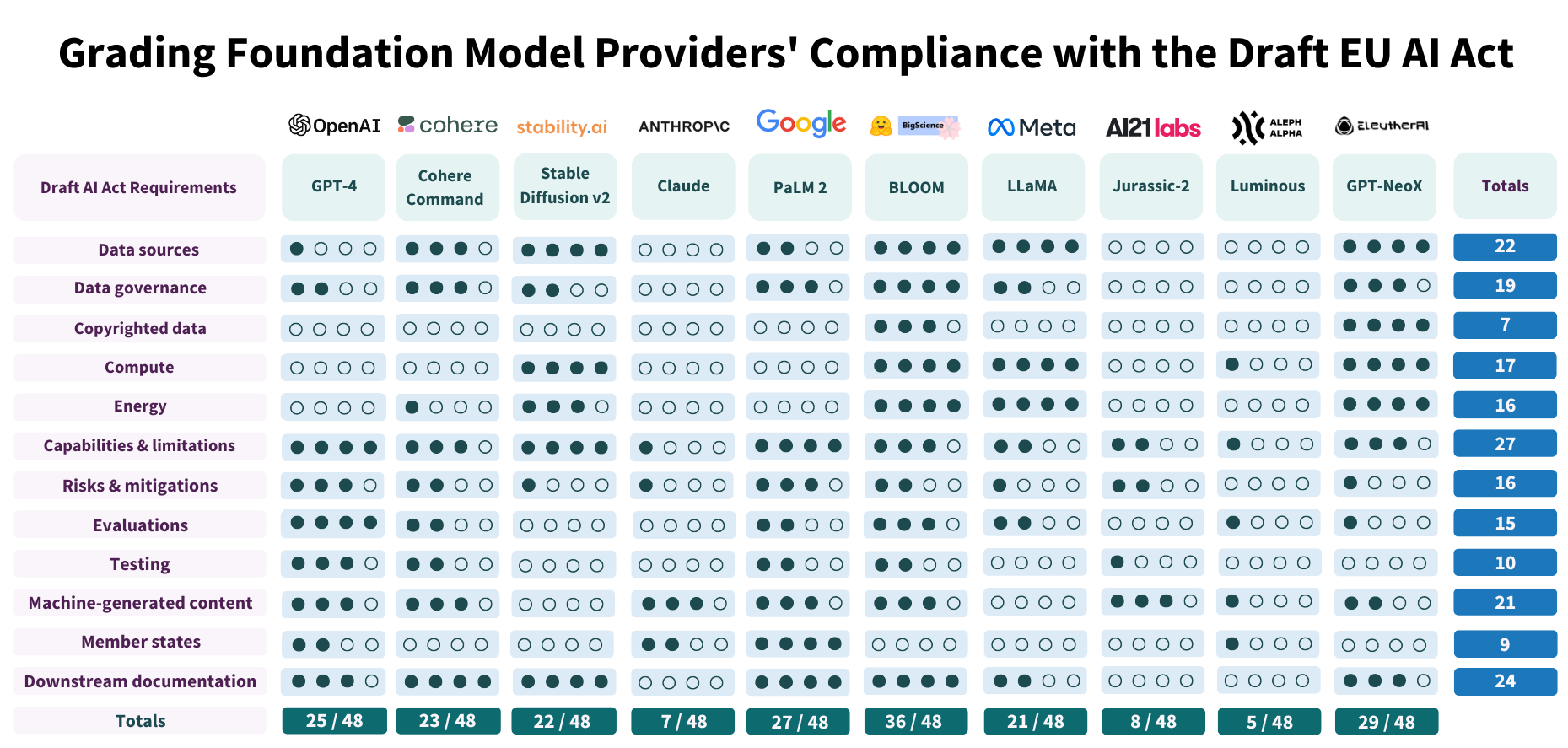 이러한 점수를 발표하게 된 배경에는 EU에서 추진 중인 생성모델(generative model) 들에 대한 규제 법안(Draft AI Act) 때문이다.